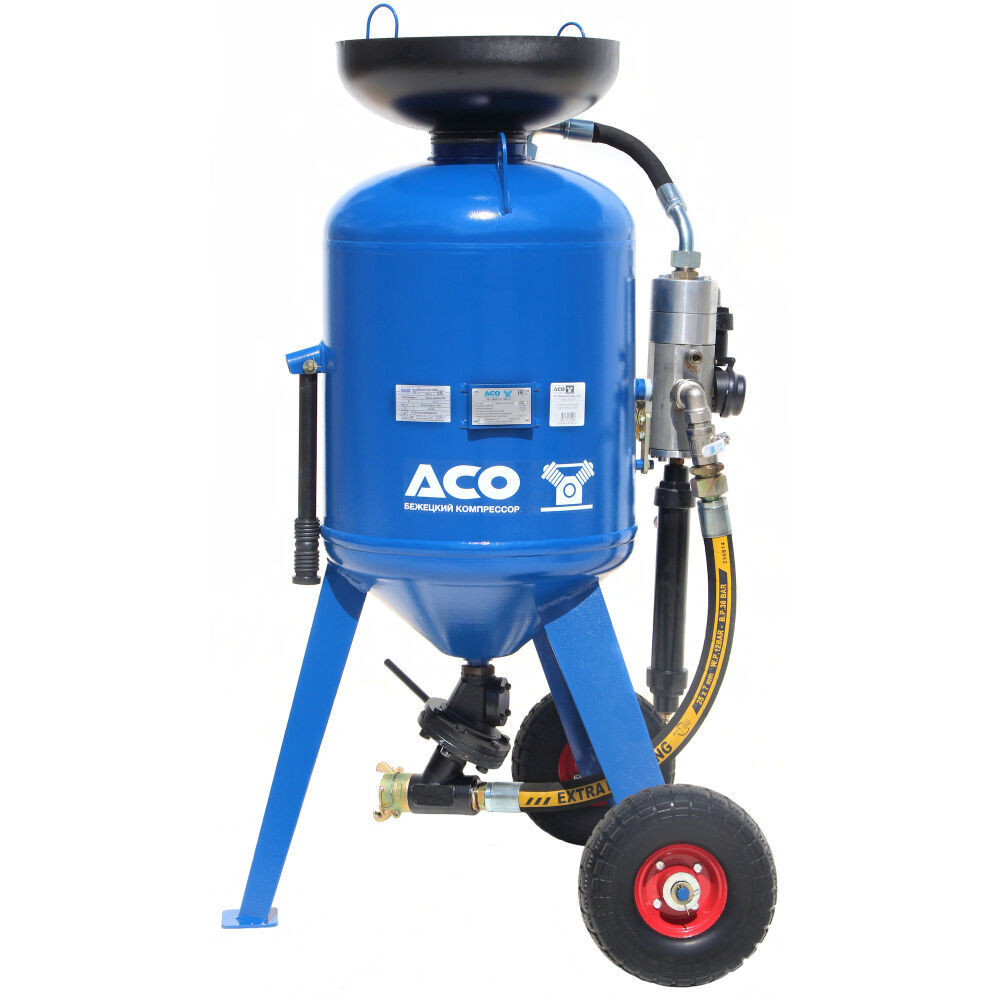 Аппарат струйной очистки АСО-100 представляет собой устройство, состоящее из ресивера, образующего рабочую камеру аппарата, загрузочного бункера с сеткой, дозатора абразива и блока управления.