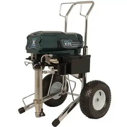 Поршневой аппарат высокого давления в передвижном исполнении для использования по безвоздушному распылению грунтов, краски, окрасочных и антикоррозионных материалов, огнезащиты и антисептиков. Данный аппарат по сути является калькой заслуженного Graco Mark X. Система "низкого" всасывающего клапана (L - LOW) позволяет работу с более вязкими составами.