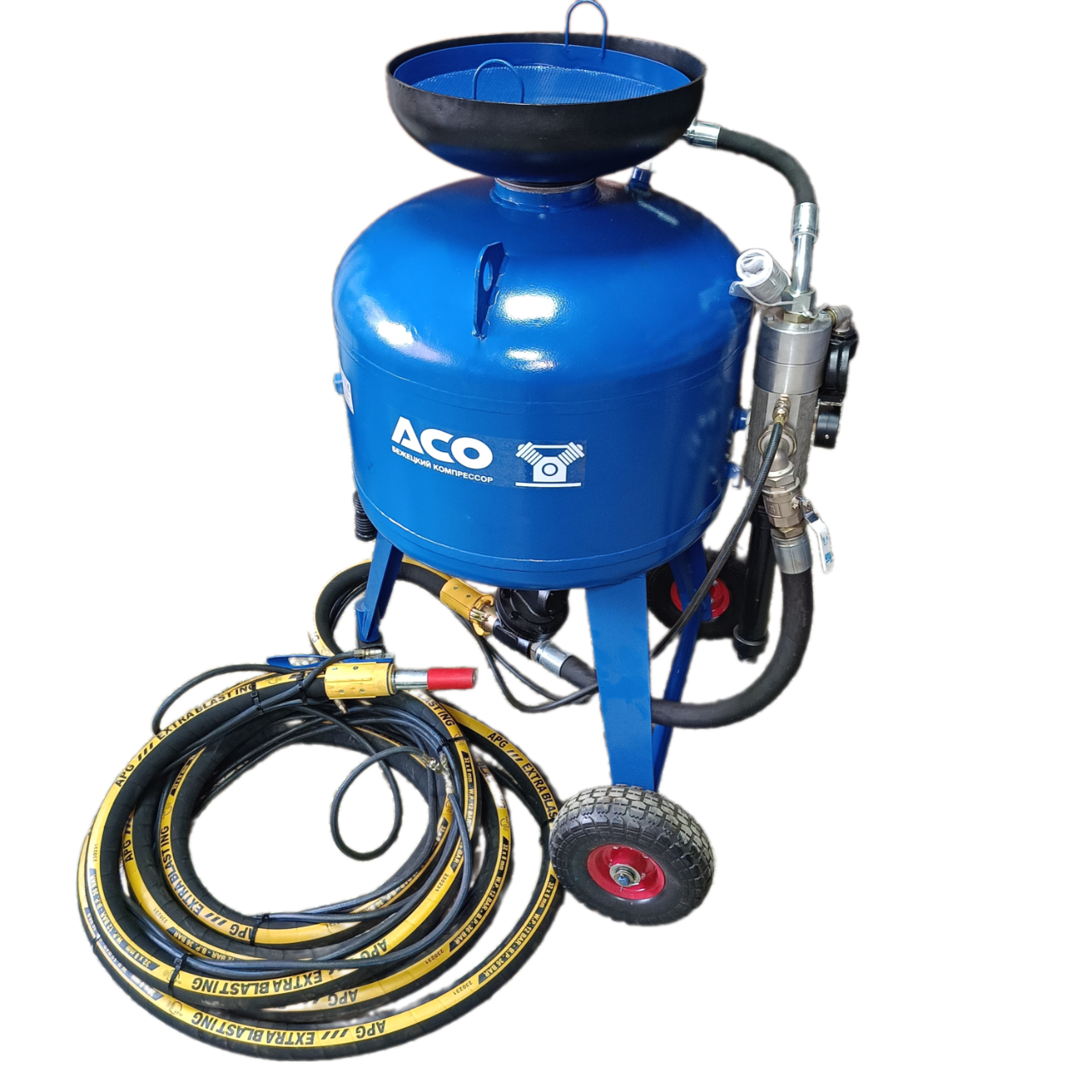 Аппарат струйной очистки АСО-150 имеет производительность по очистке поверхности до 37 м²/ч. Расход сжатого воздуха 4 - 10 м³/мин