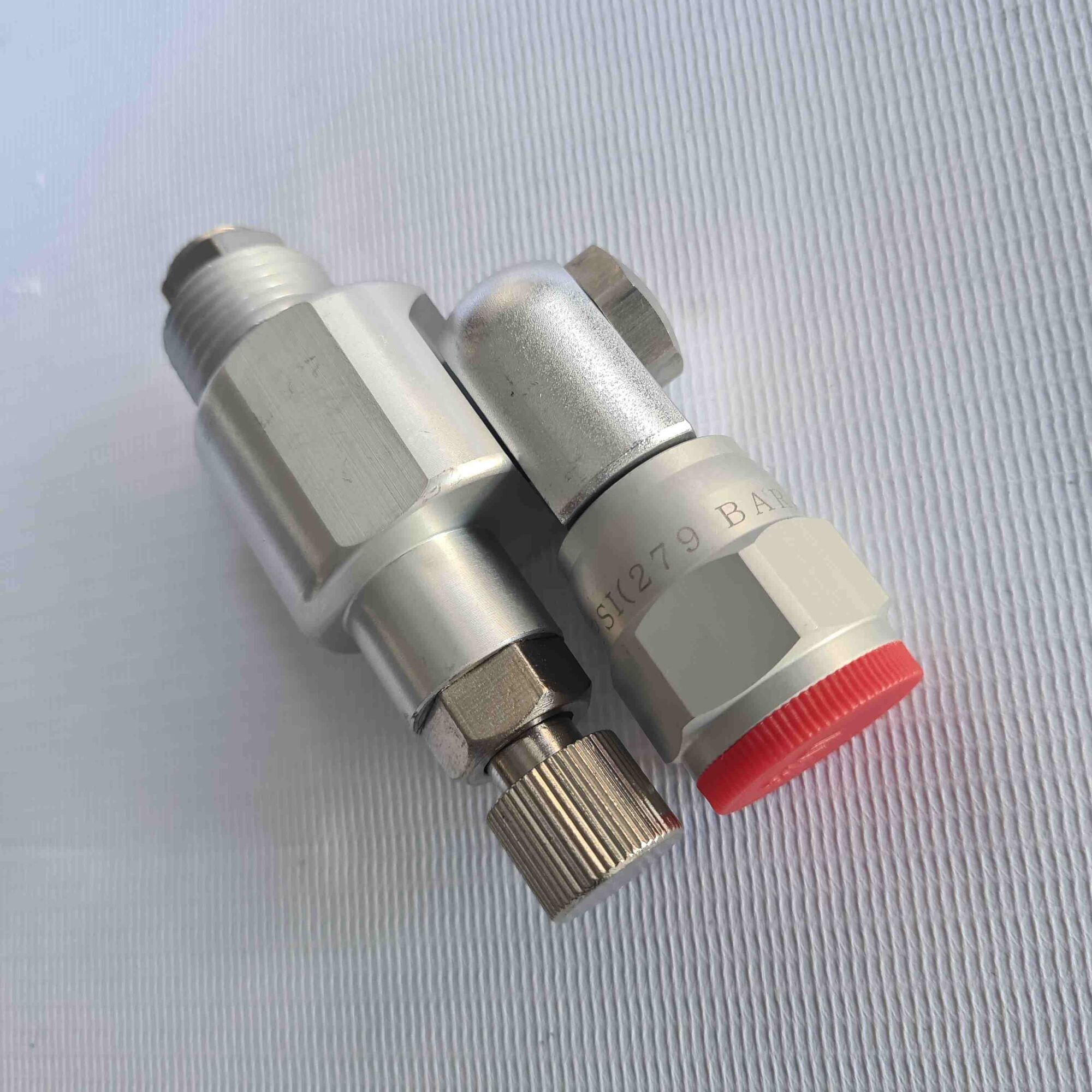 Выполняет роль отсекающего клапана. В основном применяется при выполнении окраски с удлиняющей удочкой, поэтому выполнен в виде поворотного узла. Предотвращает инерционные подтеки и плевки окрасочного материала в момент прекращения подачи краски. Исполнение под крепление 7/8".