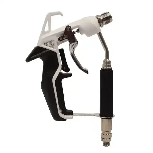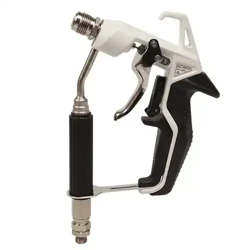 - Прохождения рабочего материала через обводную нержавеющую трубку и конструкция пистолета без внутреннего фильтра. Такая конструкция больше подходит для тяжелых материалов, минимизируя засоры и блокировку рабочего состава.