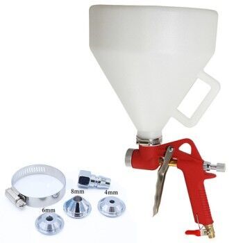 Предназначен для распыления шпаклевки, мраморной крошки, прочих текстурных и декоративно-отделочных материалов. Объем бака 4900 мл. Комплект распылительных сопел 4, 6, 8 мм.