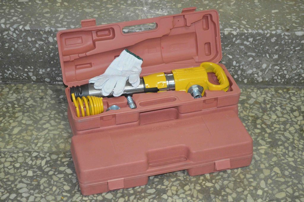 Отбойный молоток серии High-End упакован в удобный кейс из высококачественного пластика, формованный под инструмент и его комплектующие. Вложена пара рабочих перчаток.