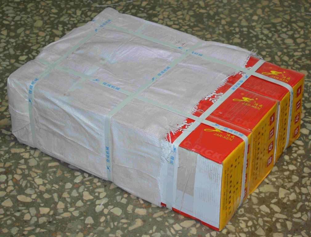Цветной картон хорошего качества. Внутри вкладыш из пенопласта, формованный под отбойный молоток и его комплектующие. Сам отбойный молоток в консервационной смазке и упакован в полиэтилен.