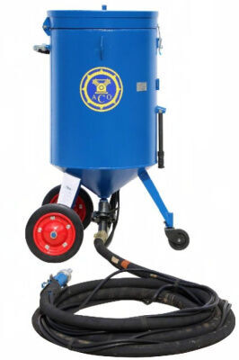 Аппарат струйной очистки АСО-200 состоит из ресивера, образующего рабочую камеру аппарата, загрузочного бункера с сеткой, дозатора абразива, напорного рукава и блока управления.